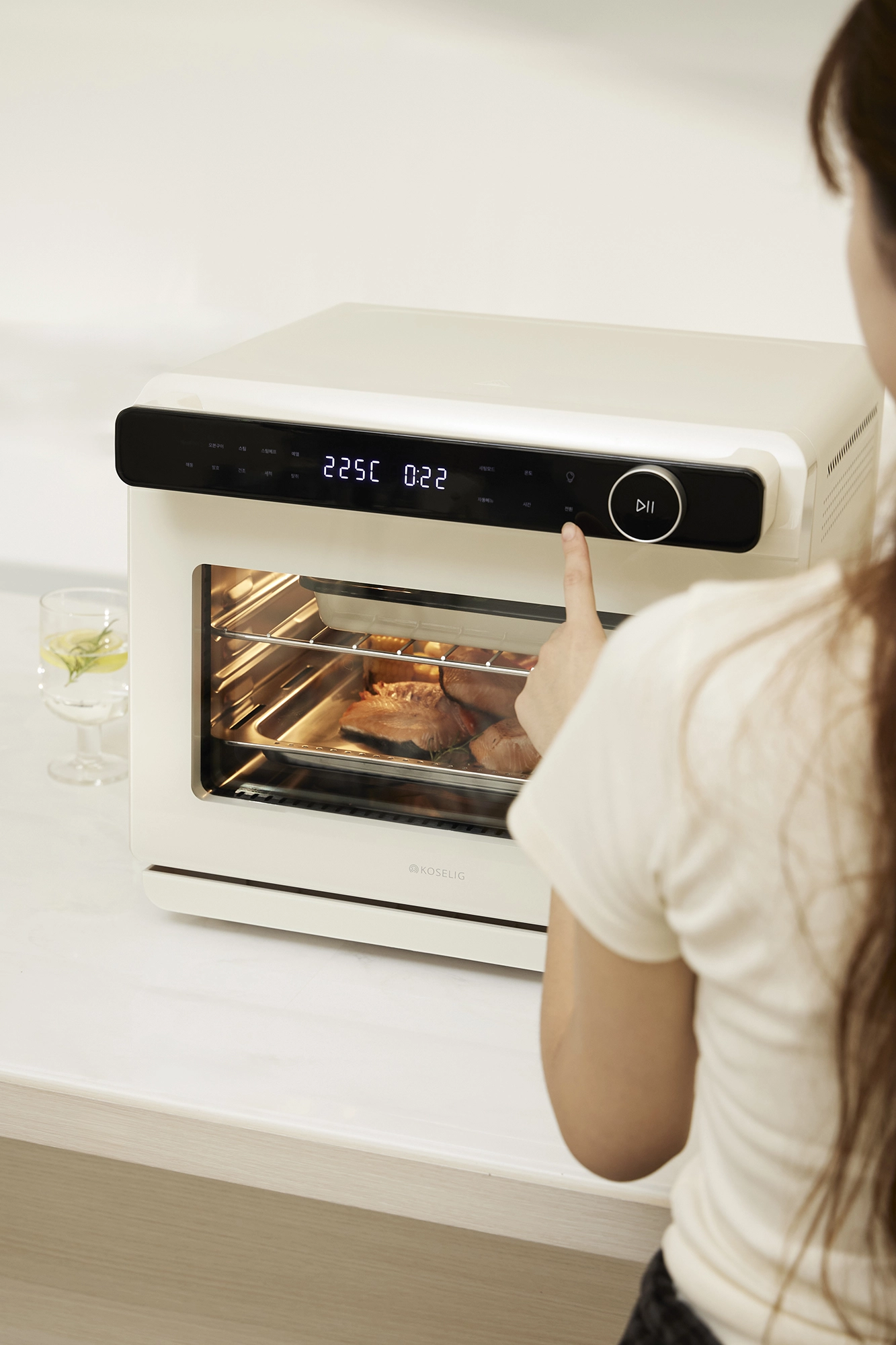 이번 촬영의 주인공인 코슬리 스팀 에어프라이어는 디지털 온도/시간 제어, 고급스러운 디자인, 스팀 기능을 통해 다양한 조리 기능을 갖춘 제품으로, 주방 인테리어와 기능성을 동시에 만족시킵니다.