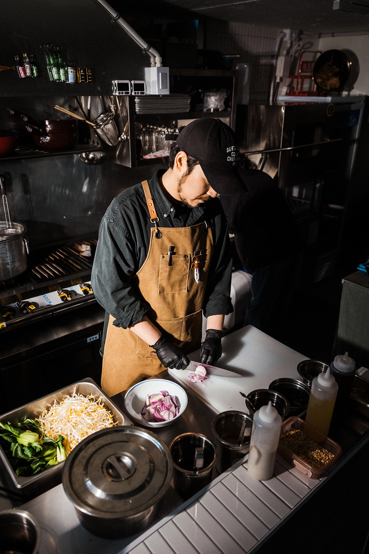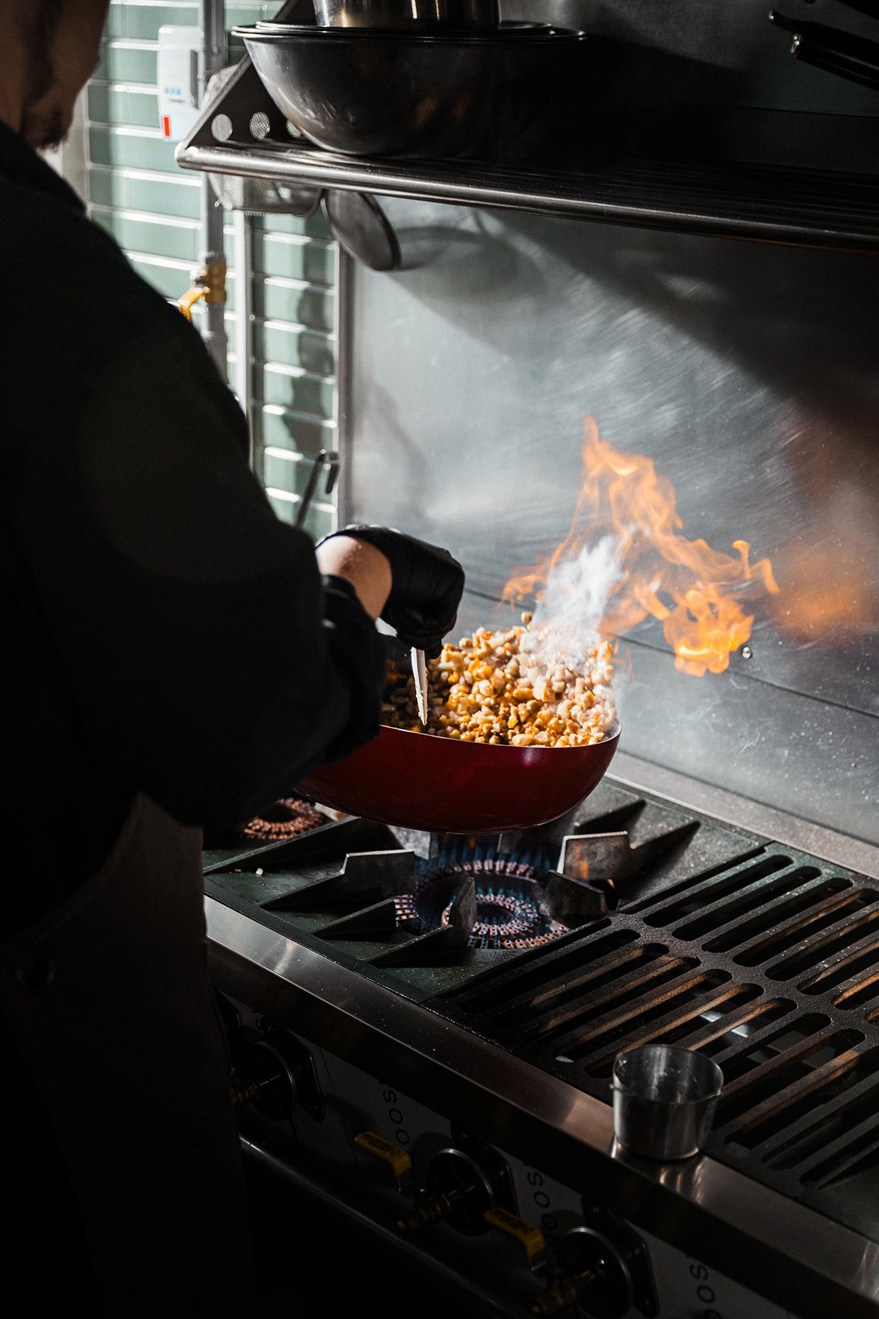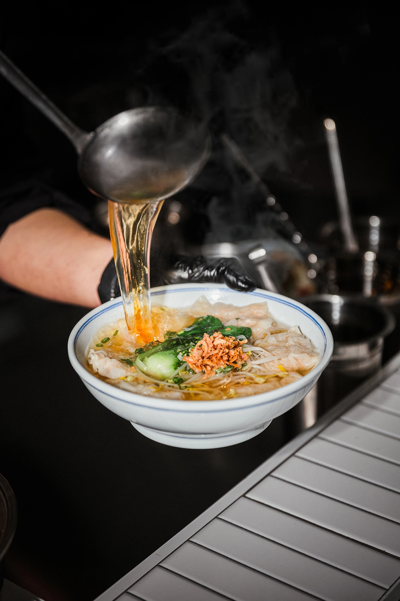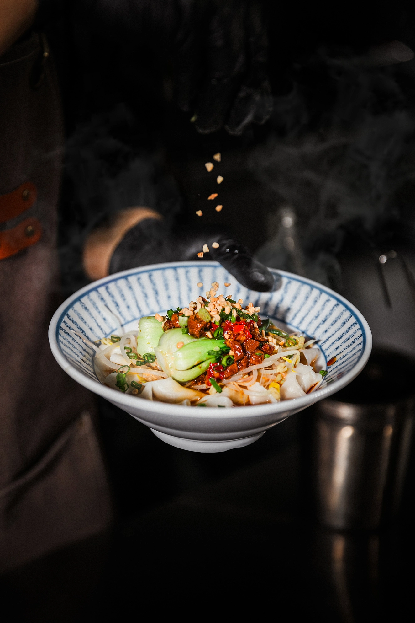 2. 조리 장면 - 불맛을 살리는 웍 작업, 국물 붓는 장면, 고명을 부리는 순간 등 요리의 '과정미학' 포착