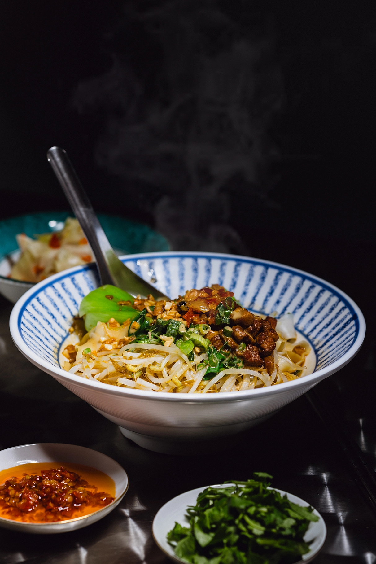 3. 완성 컷 - 김이 모락모락 피어오르는 훈툰탕. 땅콩과 고수가 듬뿍 얹어진 홍요우차오소우 등 '먹고 싶어지는 순간' 구현